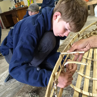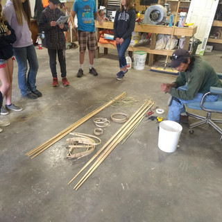 For the past two weeks, the Grade 7/8s have been carefully constructing an authentic sturgeon nose canoe, wiyaǂ ʔa·k̓un yaqsuʔmiǂ, for the school. They used traditional materials including bittercherry bark, cedar root, cedar and white pine, and no modern tools. This was accomplished under the skilled supervision of Wayne Louis and was made possible by the support of Jenni Jacobs, Yaqan Nukiy's Ktunaxa Language Teacher.